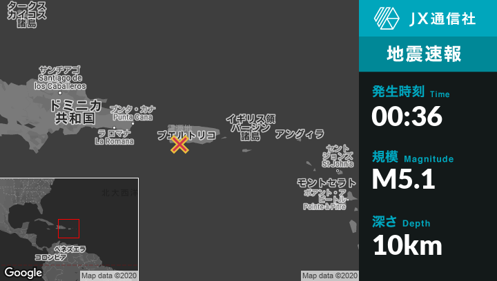 | 震源地 | プエルトリコのYaucoから西北西3kmの地点 |