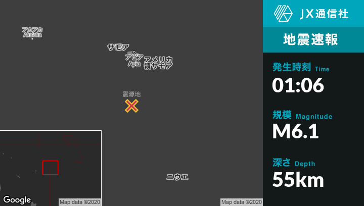 | 震源地 | トンガのHihifoから東200kmの地点 |