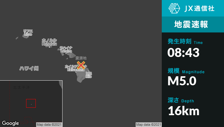| 震源地 | ハワイのKukuihaeleから北北西12kmの地点 |