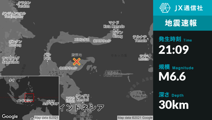 | 震源地 | インドネシアのLuwukから西82kmの地点 |