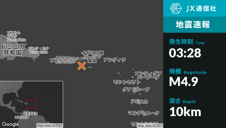 | 震源地 | プエルトリコのEsperanzaから南東19kmの地点 |