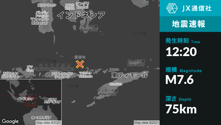 | 震源地 | インドネシアのMaumereから北95kmの地点 |