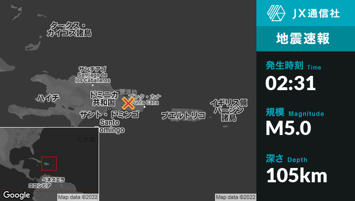 | 震源地 | ドミニカ共和国のPedro Sánchezから南3kmの地点 |