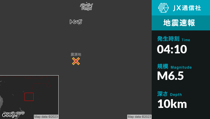 | 震源地 | トンガの‘Ohonuaから南270kmの地点 |