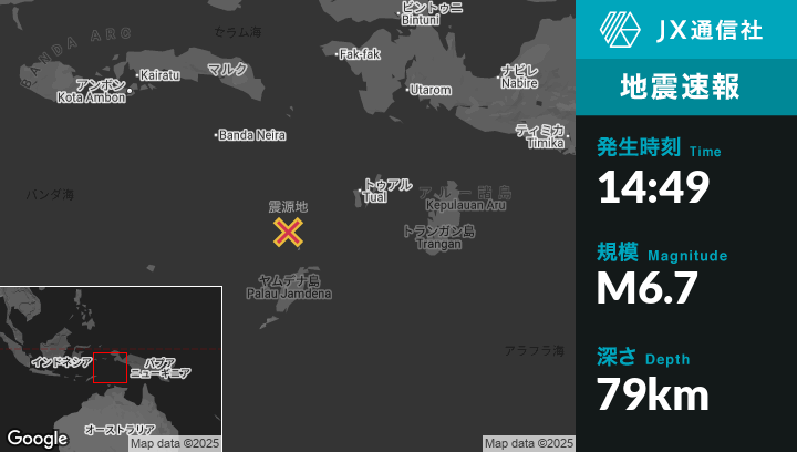 | 震源地 | インドネシアのTualから西南西173kmの地点 |