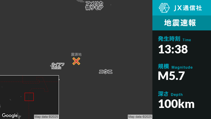 | 震源地 | トンガのNeiafuから東北東208kmの地点 |