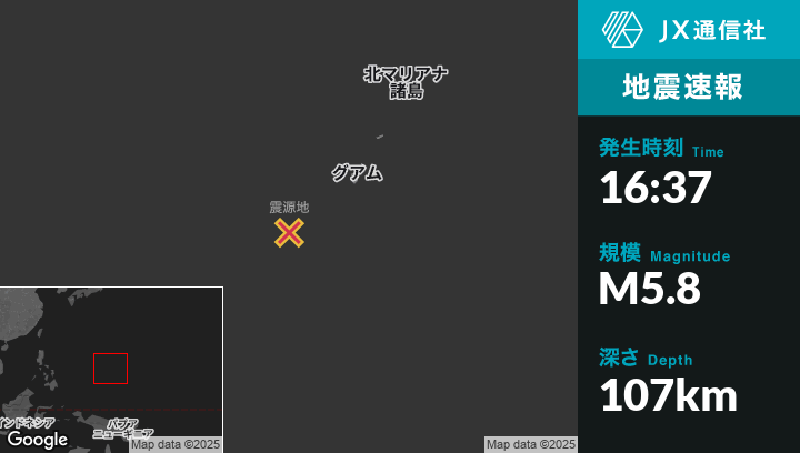 | 震源地 | グアムのMerizo Villageから南西164kmの地点 |