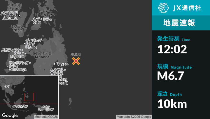 1月07日 12:02頃、フィリピンのBaculinから東68kmの地点でM6.7の地震がありました。