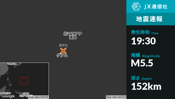 | 震源地 | グアムのYigo Villageから北48kmの地点 |