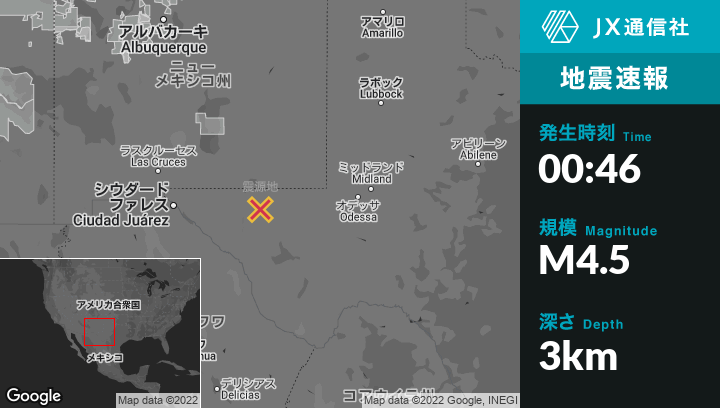 | 震源地 | ニューメキシコのWhites Cityから南南西52kmの地点 |