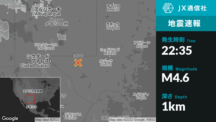 | 震源地 | ニューメキシコのWhites Cityから南54kmの地点 |