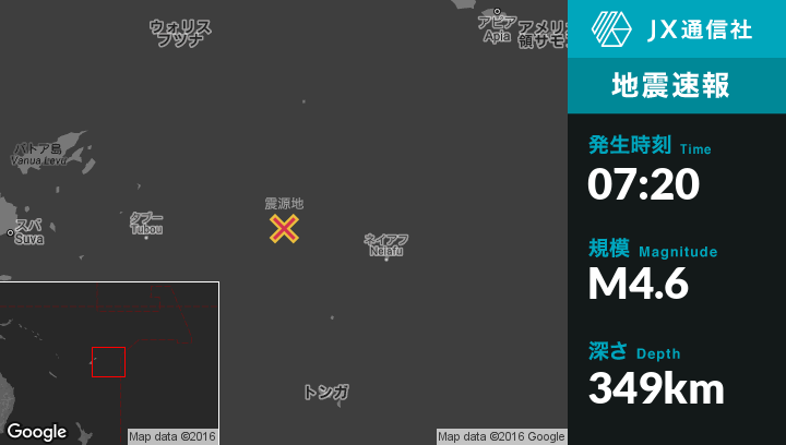 9月18日 07:20頃、トンガのNeiafuから西北西231kmの地点でM4.6の地震がありました。