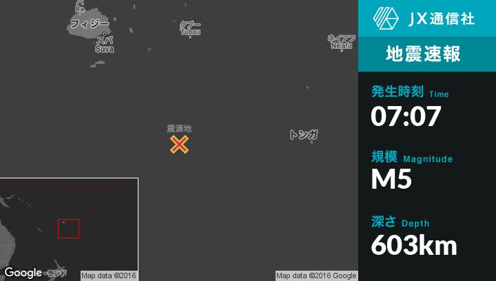 | 震源地 | フィジーのNdoi Islandから南南西88kmの地点 |