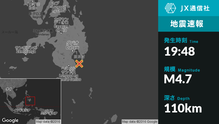 | 震源地 | フィリピンのTiblawanから西南西22kmの地点 |