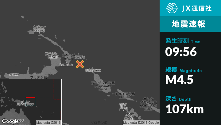 12月22日 09:56頃、パプア ニューギニア独立国のTaronから東南東79kmの地点でM4.5の地震がありました。