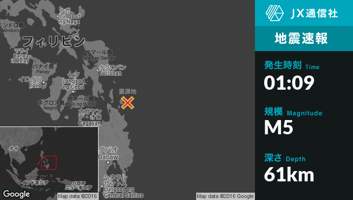 | 震源地 | フィリピンのGeneral Lunaから北東25kmの地点 |