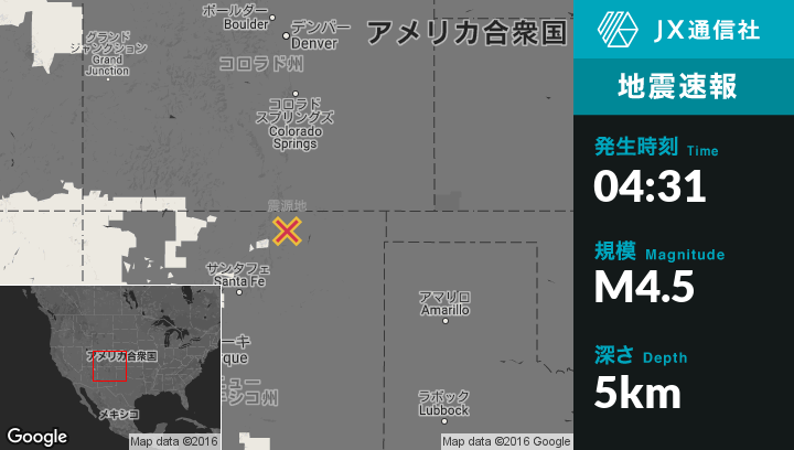 | 震源地 | ニュー メキシコ州のCimarronから北北西29kmの地点 |