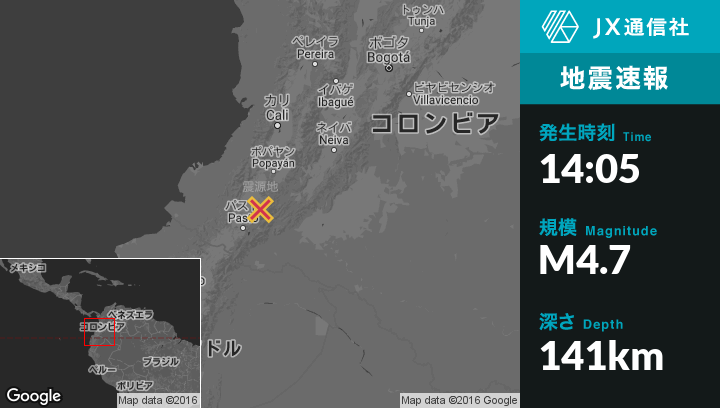 | 震源地 | コロンビアのSan Pabloから東北東13kmの地点 |