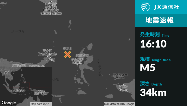 | 震源地 | インドネシアのKota Ternateから北西141kmの地点 |