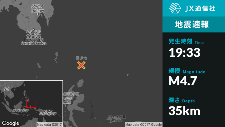 | 震源地 | インドネシアのTobeloから北北東226kmの地点 |