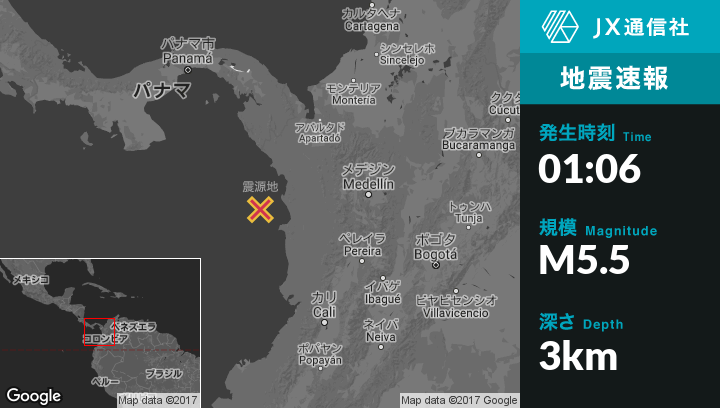 | 震源地 | コロンビアのMutisから西南西61kmの地点 |
