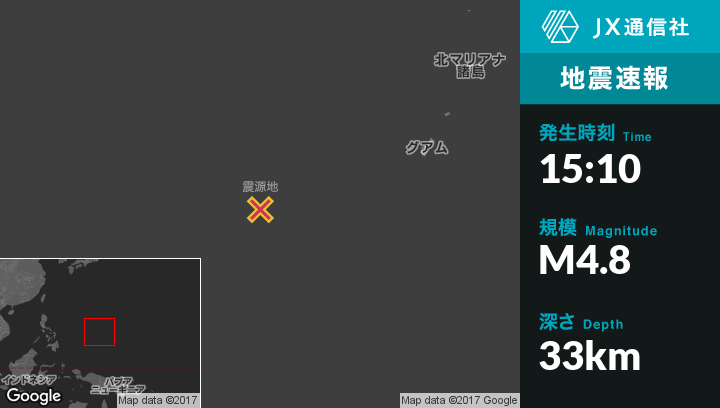| 震源地 | ミクロネシアのFaisから北北東281kmの地点 |