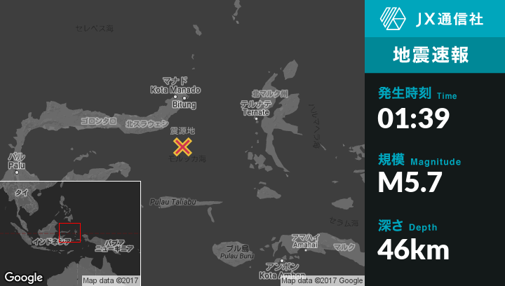 | 震源地 | インドネシアのModayagから南東106kmの地点 |