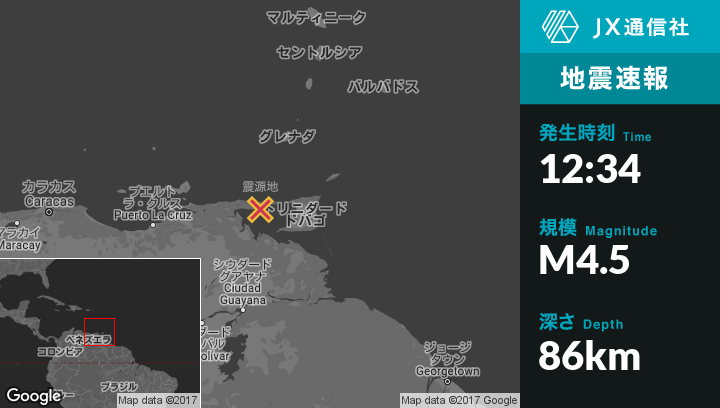 | 震源地 | ベネズエラのGueiriaから北北東8kmの地点 |