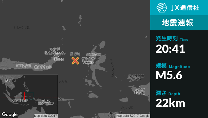 | 震源地 | インドネシアのKota Ternateから西北西119kmの地点 |