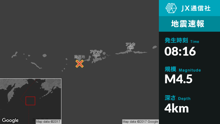 | 震源地 | アラスカのTanaga Volcanoから南東30kmの地点 |