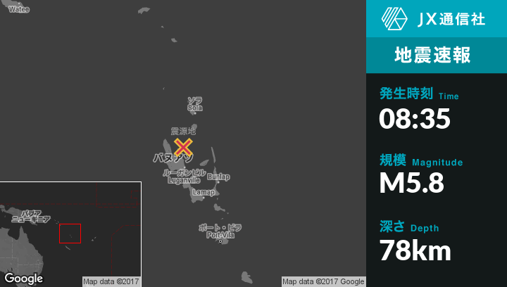 | 震源地 | バヌアツのPort-Olryから北北東30kmの地点 |