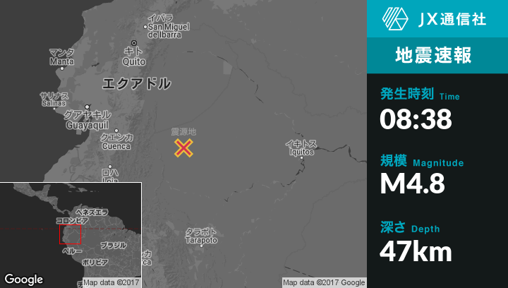 | 震源地 | エクアドルのSucuaから南東166kmの地点 |