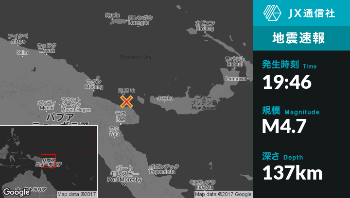 | 震源地 | パプア ニューギニア独立国のLaeから北北東127kmの地点 |