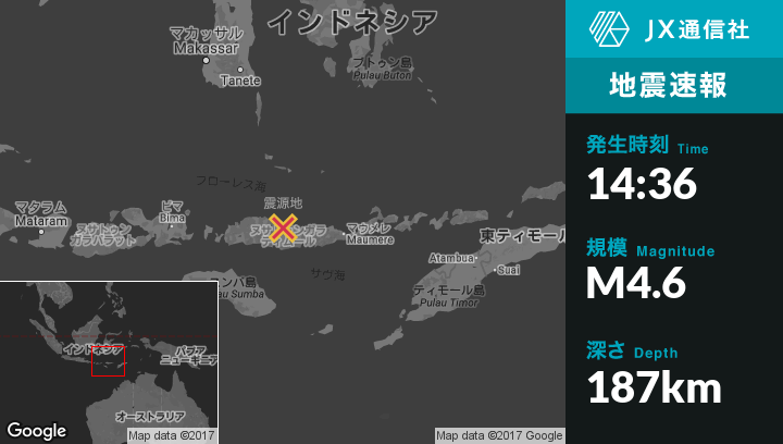 | 震源地 | インドネシアのMbarungkeliから北北西3kmの地点 |