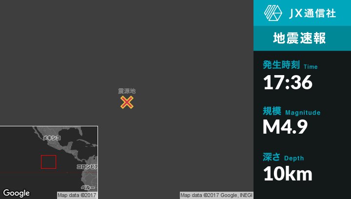 | 震源地 | フランスのClipperton Islandから南東631kmの地点 |