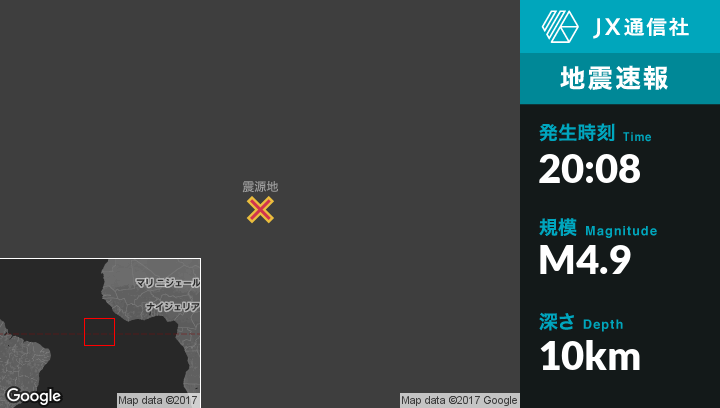 | 震源地 | シエラレオネのBontheから南西970kmの地点 |