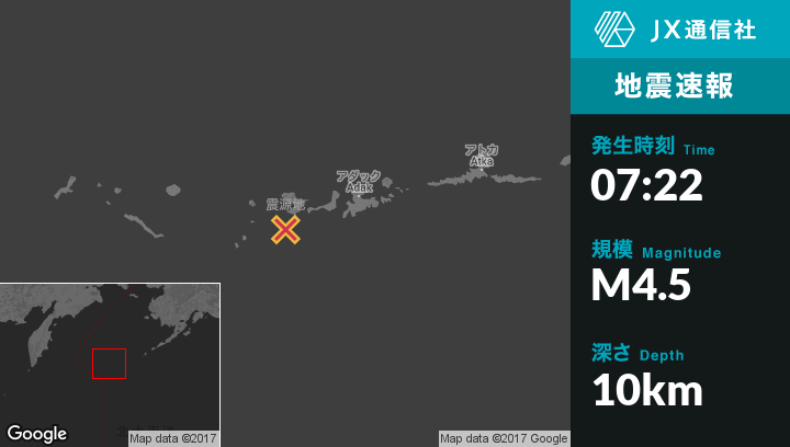 | 震源地 | アラスカのTanaga Volcanoから南38kmの地点 |