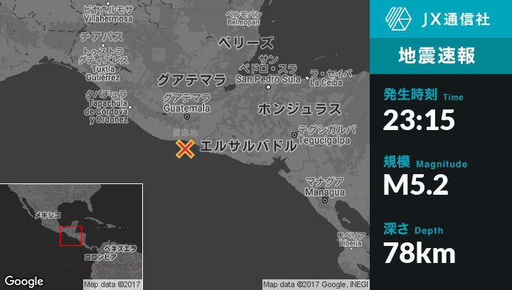 | 震源地 | グアテマラのIztapaから南東23kmの地点 |