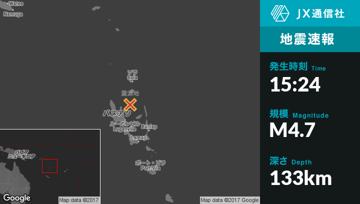 | 震源地 | バヌアツのPort-Olryから北東52kmの地点 |