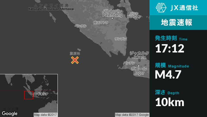 | 震源地 | インドネシアのKuripanから西南西235kmの地点 |