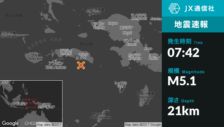 | 震源地 | インドネシアのAmahaiから東南東130kmの地点 |