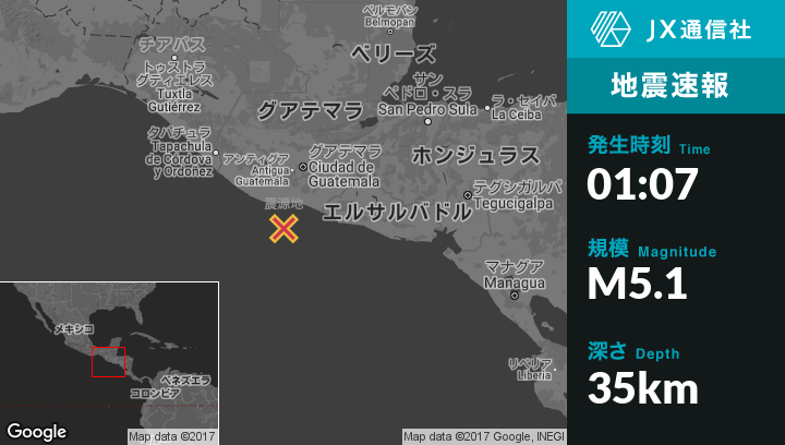 | 震源地 | グアテマラのPuerto San Joseから南43kmの地点 |