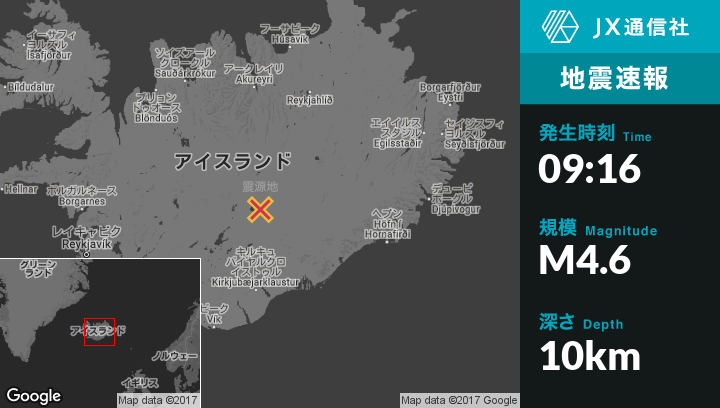 | 震源地 | アイスランドのAkureyriから南119kmの地点 |