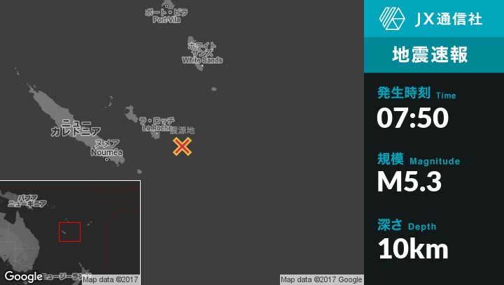 | 震源地 | ニューカレドニアのTadineから東南東99kmの地点 |