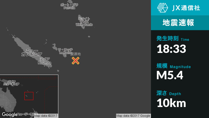 | 震源地 | ニューカレドニアのTadineから東南東98kmの地点 |