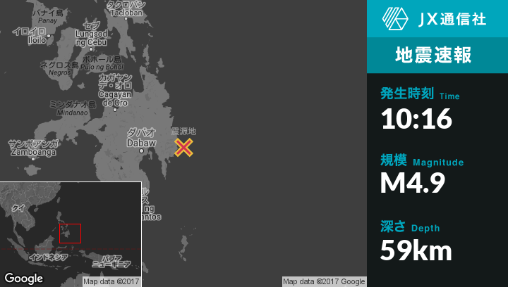 | 震源地 | フィリピンのBaculinから東南東19kmの地点 |