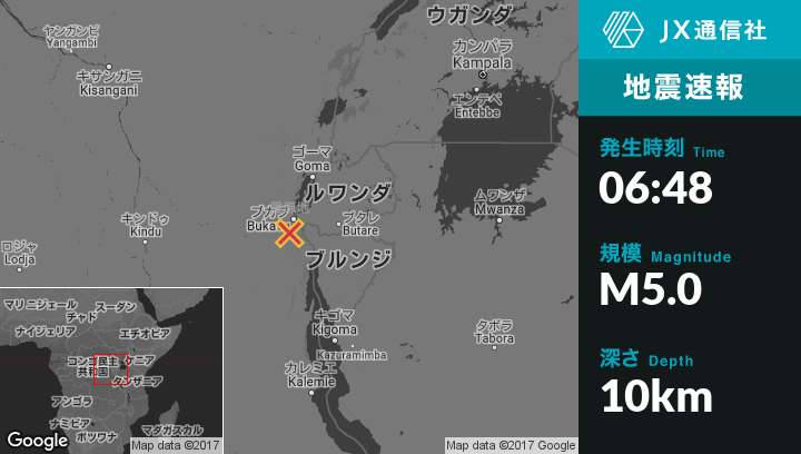 | 震源地 | コンゴ民主共和国のBukavuから南西20kmの地点 |