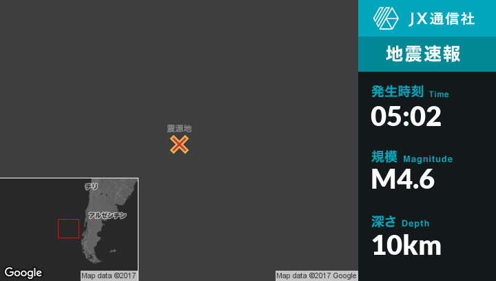 12月02日 05:02頃、チリのPuerto Quellonから西南西688kmの地点でM4.6の地震がありました。