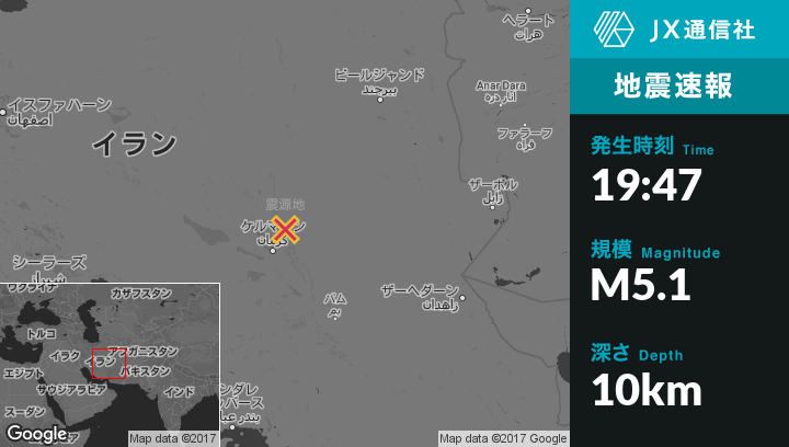 | 震源地 | イランのKermanから北北東58kmの地点 |