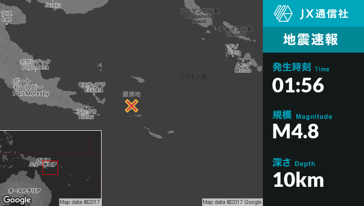 12月03日 01:56頃、パプアニューギニアのKulumadauから南南西122kmの地点でM4.8の地震がありました。